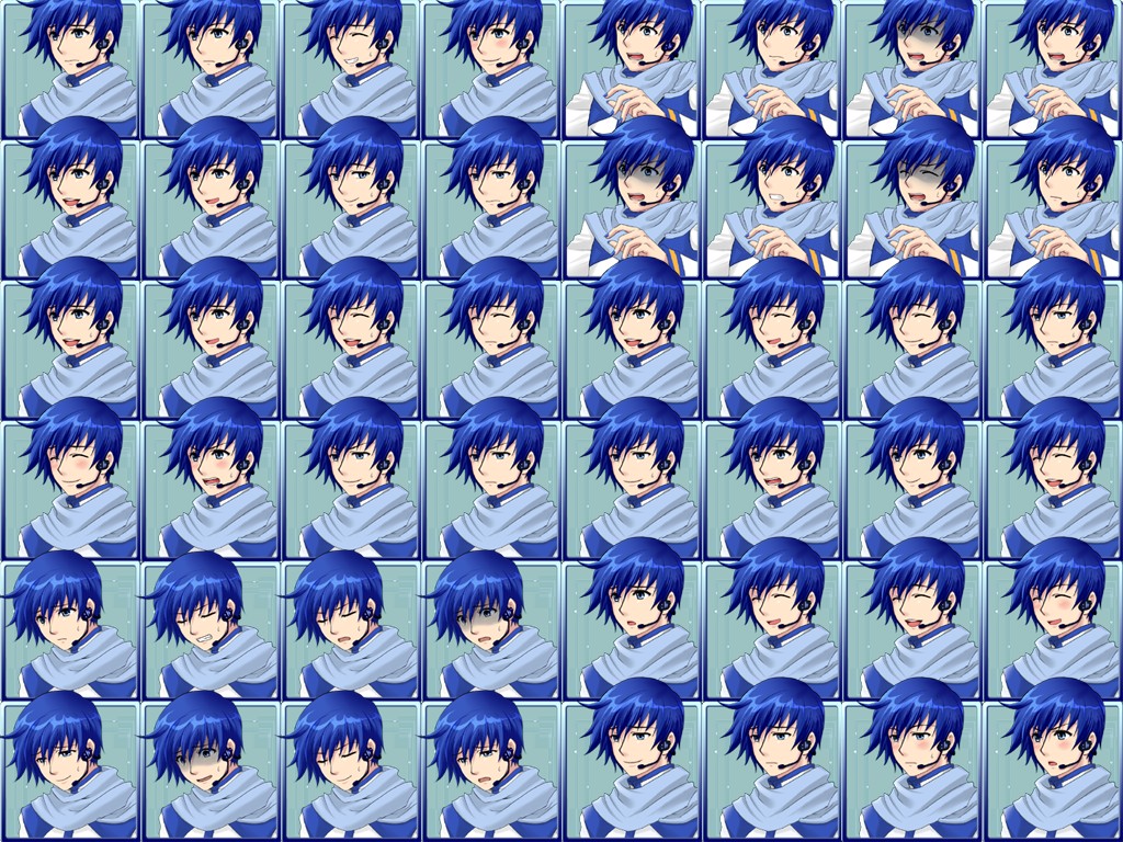 カイトの顔はほぼ常に表示されるし、種類が多い方が良いとたゆさんに言ったら、ガッツリ約60パターンを用意してくれました。