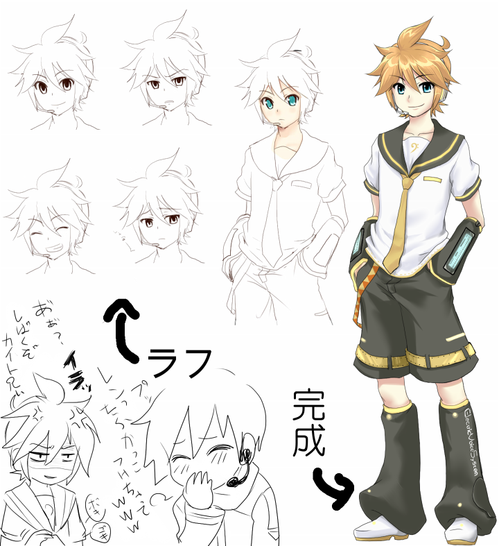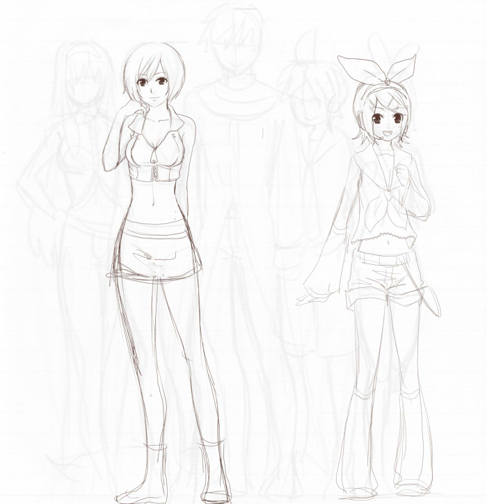 最初にラフを描いて、そっからその身長図に合わせて、足を追加しました。