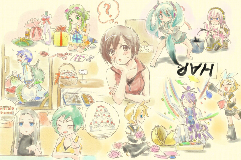 そして今日の記事は前夜祭ということで、皆でメイコの誕生日会を開くため準備中。